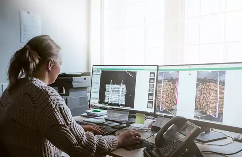 Vid Biometrias fjärrmätningscentraler sker mottagning av virke dygnet runt.