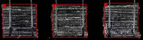 Travsidorna på släpets travar presenterade i mätsystemets gråskalebilder.