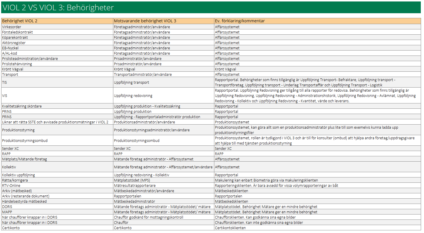 I denna artikel finner du en ungefärlig översättning från vad VIOL 2 behörigheter motsvarar i VIOL 3.