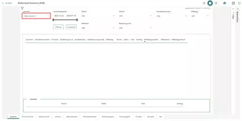 Till skillnad från många andra rapporter inom området Redovisa, kan du endast få fram data i rapport Redovisad leverans [934] genom att först välja en leverans.