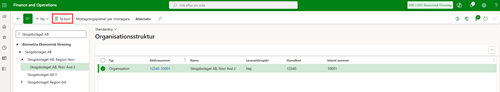 Du tar bort en ej använd organisatorisk enhet genom att i funktionen ”Organisationsstruktur” markera den aktuella enheten och klicka på ”Ta bort”.