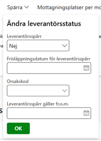 Leverantörsspärr: Sätts till JA för att kunna spärra en aktör