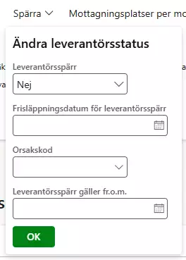 Leverantörsspärr: Sätts till JA för att kunna spärra en aktör