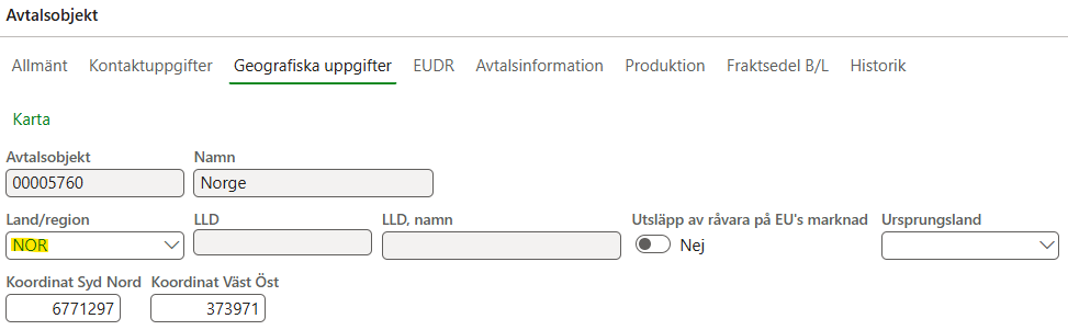 I VIOL 3 bygger debiteringsunderlag Skogforsk på att uppgift om Land (ej ursprungsland) skiljer sig mellan avtalsobjekt och mottagningsplats. Information om detta lagras på destinerat sortiment som "Införsel Sverige" eller "Utförsel Sverige". Därför är det viktigt att uppgift om Land är korrekt på avtalsobjektet. Detta anges vid skapande av nytt avtalsobjekt samt kan redigeras i status preliminär. Som exempel ska leveranser av råvara från Norge till svensk industri eller terminal ha Land=NOR på avtalsobjektet för att dessa leveranser ska betraktas som Införsel till Sverige och därmed undantas från underlag till Skogforsk.