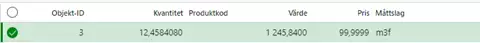 Detta sker då priset räknas ut som ett á-pris i efterhand genom att ta det avrundade värdet 1245,8400 dividerat med den avrundade kvantiteten 12,4584080 vilket ger priset 99,9999.