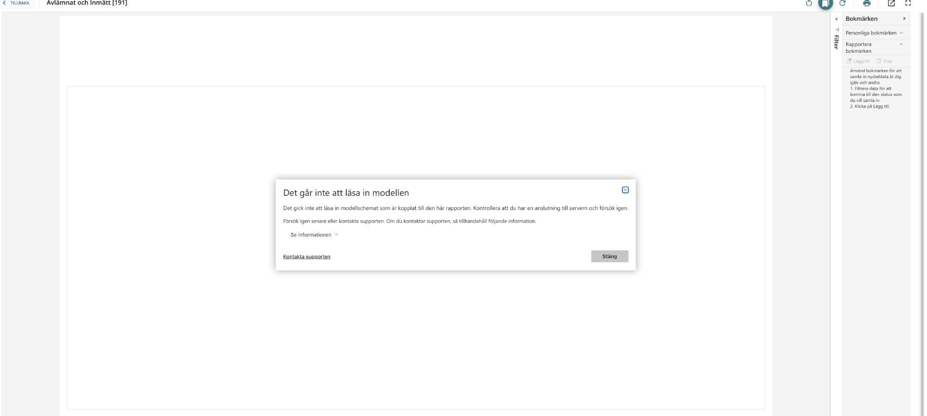 Felmeddelande som kund kan få i Rapportportalen när kunden försöker titta på datan med en gmailaddress:
