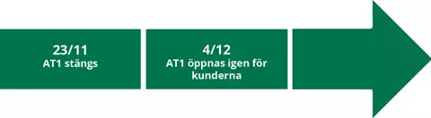 - Att kundtestmiljön AT1 kommer att vara helt stängd under en period, innan vi kan öppna miljön igen den 4/12 2023