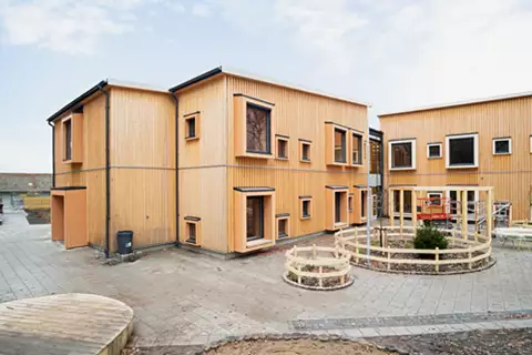 På Backa Kyrkogata på Hisingen står den nu klar, världens första moderna klimatneutrala förskola, nästan helt byggd i trä. Det började som ett innovationsprojekt men har blivit så lyckat att Göteborgs Stads lokalförvaltning har initierat ett helt innovationsprogram för klimatneutral byggnation.