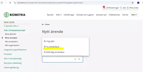 Innan du beställer en användare behöver du först beställa en aktör till VIOL 3s produktionsmiljö då användaren kopplas till aktören.