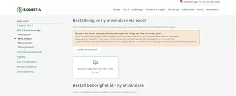 För att beställa flera användare på samma gång för ett bolag - ladda ner och använd excel filen och släpp den sedan under rutan - Drag och släpp din fil här.
