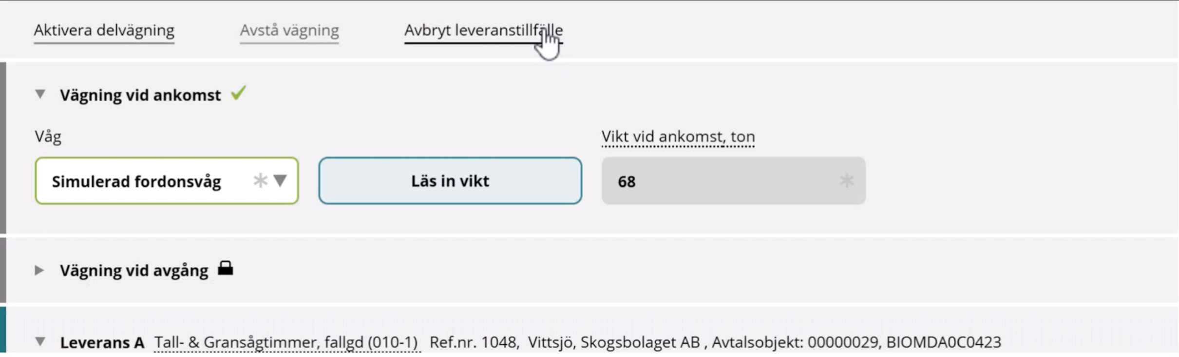 You need to Slutför leveranstillfälle (Complete delivery opportunity), when all steps are completed and any printouts for random sampling and test stacks have been printed. You do this by clicking on the line Slutför Leveranstillfälle (Complete delivery opportunity). See image 1 below.