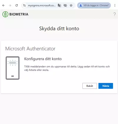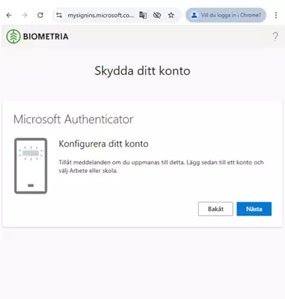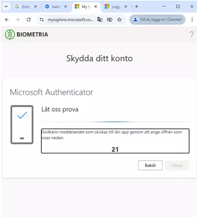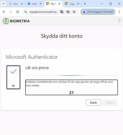 Switch back to the browser where you are signing in and click "Nästa" (Next).