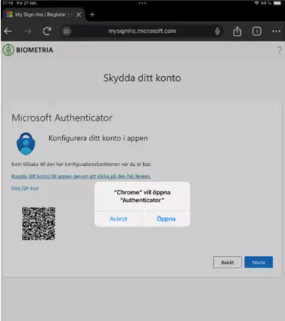 Click on "Öppna" (Open) if you're asked to open Authenticator: