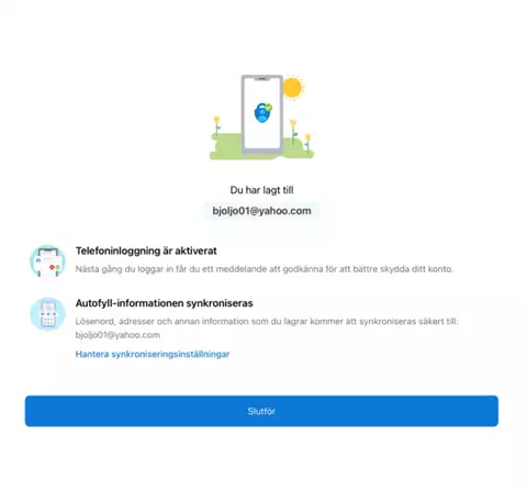 Go back to the device where you are signing in and click "Nästa" (Next).