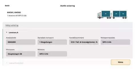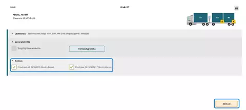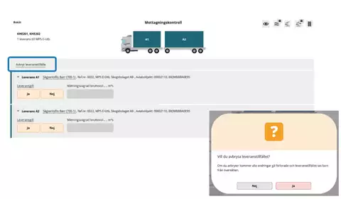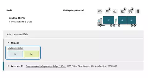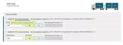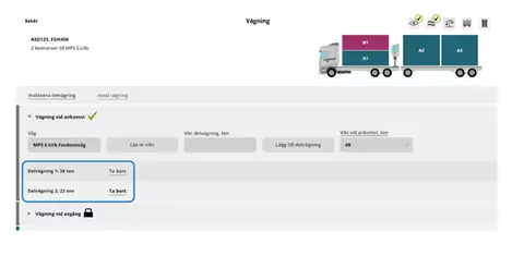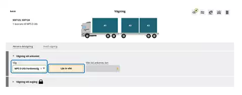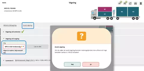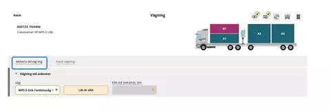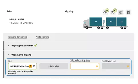 Vid val Ja måste chauffören göra en utvägning på fordonsvåg vid avgång.