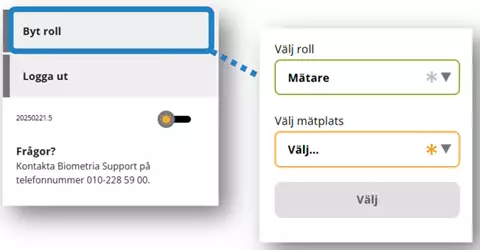 Du kan ha en eller flera roller knutna till din användare i Mätplatsstödet (MPS). Om du har fler roller är det möjligt att byta roll efter att du har loggat in.