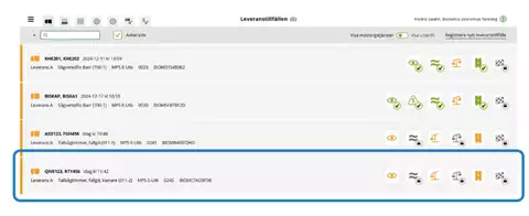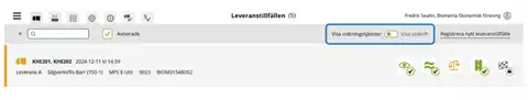 Efter inloggning med rollen som mätare möts du av en startvy med pågående Leveranstillfällen. Här visas en översikt över pågående leveranstillfällen för den mätplats du har loggat in på.