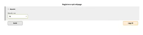 När ekipaget står på vågen ska vikten vid avgång läsas in.