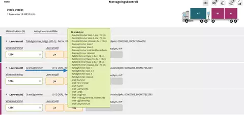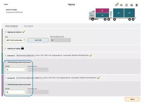 - Förslag till viktfördelning mellan leveranserna görs vid invägning.