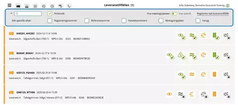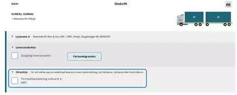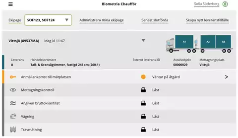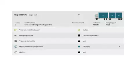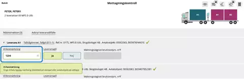 - Chaufför godkänd för mottagningskontroll– Samma som chaufför men är även behörig att utföra mottagningskontroll på egen hand för leveranser som ska fjärrmätas.