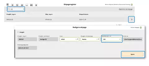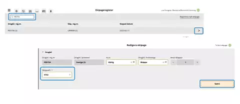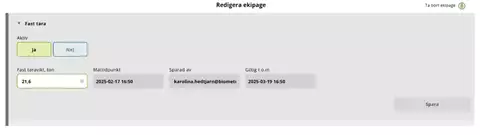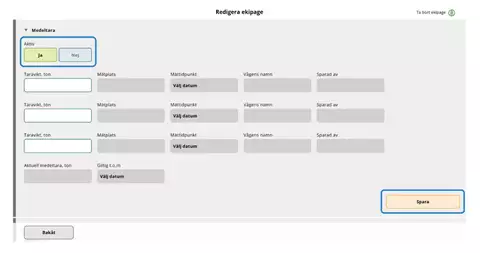 Behörig användare måste då aktivera funktionen i Ekipageregistret igen för att medeltara åter ska kunna användas.