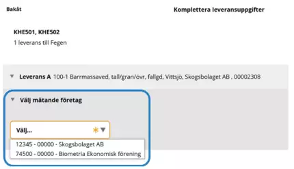 - Företagsspecifika handelssortiment - Kan styras av lokala mätningsbestämmelser som skiljer sig åt för ett handelssortiment på en mottagningsplats beroende på vilket företag som är säljare. Till exempel ”Vi gör så här om företag X är säljare och så här om företag Y är säljare”. Kan även finnas på grund av hur företagen vill redovisa mot skogsägaren. Exempelvis ”Det ska synas tydligt att det tagits emot av oss och det ska synas på mätbeskedet”.