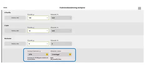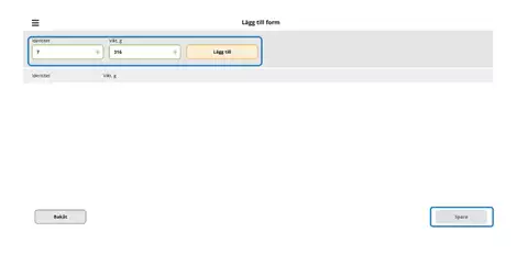 Vikterna läggs ihop av systemet. Om en vikt blir fel går det att välj Ta bort vikt och läsa in vikten på nytt.