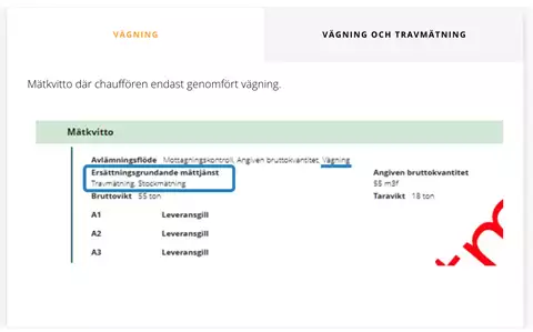 I ett sådant fall måste vikten skrivas in manuellt av mätare eller chaufför, beroende av vad flödet tillåter. Om vikt ej får anges manuellt måste leveransen stoppas.