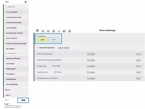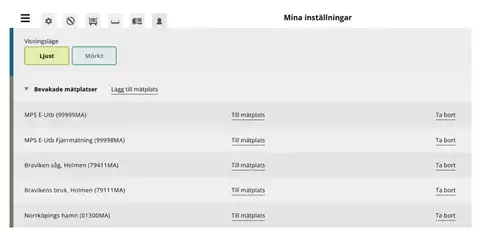När du ska välja mätplats vid första inloggning i Mätplatsstödet (MPS) kan du välja bland alla mätplatser i hela Sverige. När du har loggat in kan du anpassa vilka mätplatser som är kopplade till din användare via Bevakade mätplatser. Bevakade mätplatser når du via menyvalet Mina inställningar. Där går det att lägga till eller ta bort mätplatser som du inte längre vill bevaka.