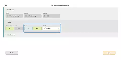 För att funktionen ska vara valbar behöver vågen vara markerad som inaktiv under Utrustningar på Administrations-menyn.