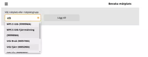 - Sök på mätplatsens/mätplatsgruppens namn.