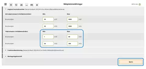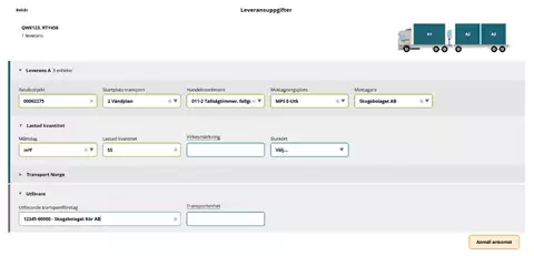 | Korrigerat formuleringar. Gäller följande: Rubrik 6 Registrera leveranstillfällen angående Efterregistrering. Rubrik 13.1 Ekipageregister angående Avvikande taravikt. Rubrik 13.3 Mer om ekipageregister angående Användning av medeltara. | 2025-03-17 |