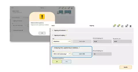 Om vägning är ersättningsgrundande för råvara och aktuell våg är inaktiverad, får chauffören en signal om det i Chaufförsklienten när aktuell våg väljs i listan.