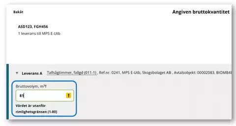 I Angiven bruttokvantitet kan begreppet Andel direkt översättas till kubik per leverans eller som delar av total volym exempelvis 0,3 och 0,7.
