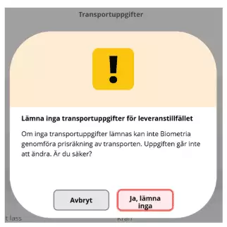 Om du väljer att avstå vägning i detta skede får du bekräfta att vägning ska avstås.