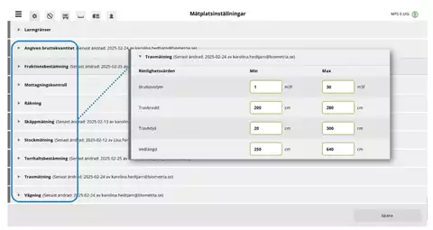 - Stickprovsmätare – Kan godkänna stockmätningar vid kollektivstickprov, sätter larmgränser för väntande stickprov.