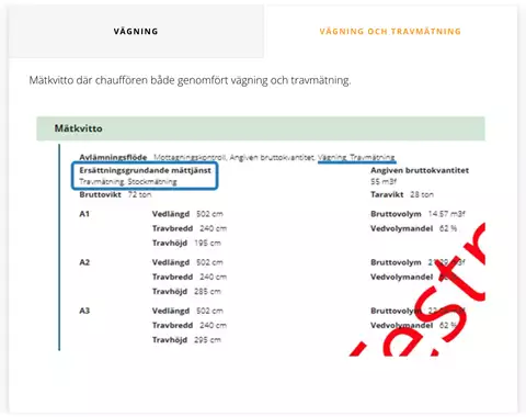 Om travmätning ingår i mätningsflödet kan viktfördelning korrigeras utefter hur många kubik travmätningen angett per leverans.
