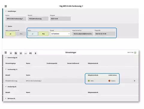 - Samtliga vågar på aktuell mätplats är inaktiverade.