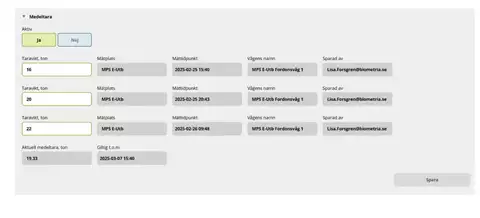 - Om Nej väljs inaktiveras funktionen medeltara.