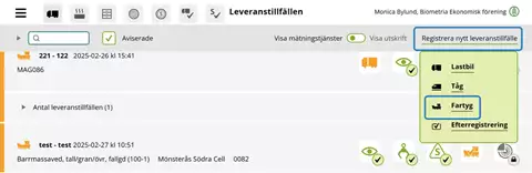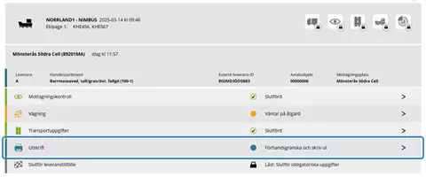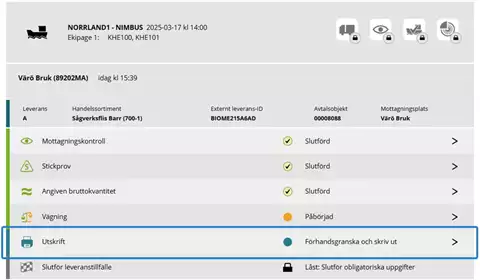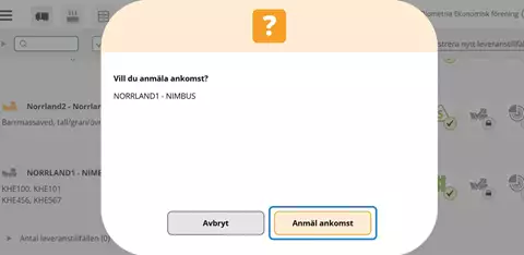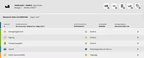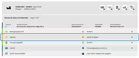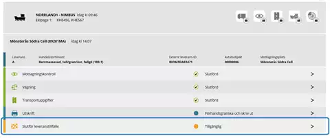 När fartyget är ankomstanmält och godkänt i mottagningskontrollen är det möjligt för chauffören att registrera leveranstillfällen för fartyget.