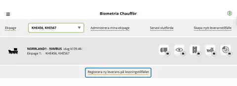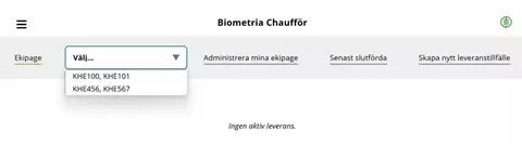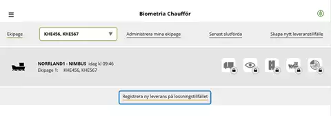 Chauffören loggar in i Chaufförsklienten och väljer aktuellt ekipage för lossningstillfället.