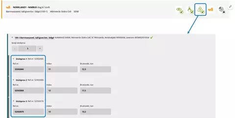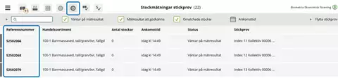 - Klicka på den grönbockade stickprovsikonen för att få se de sparade stickproven med referensnummer.