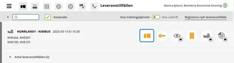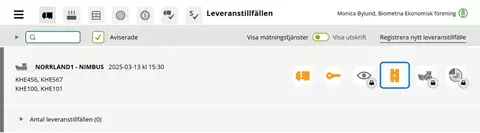 Ett lossningstillfälle är markerat med ett fartyg till vänster (se bild ovan). Antal genomförda leveranstillfällen redovisas under huvuduppgifterna för lossningstillfället.