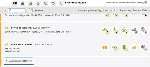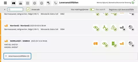 Senast slutförda leveranstillfällen