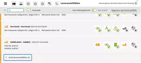 Klicka på raden så visas de slutförda leveranstillfällena.
