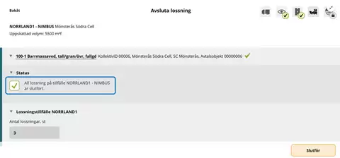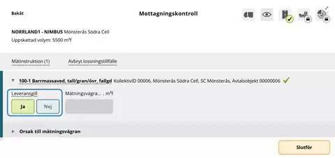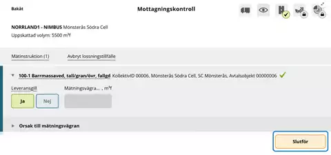 När samtliga mätningstjänster är slutförda i Mätplatsstödet (MPS) är lossningstillfället komplett för redovisning.