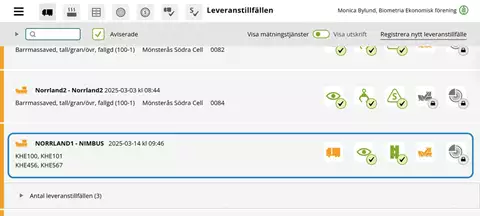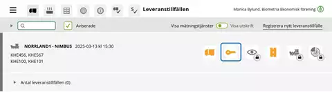 När du loggar in med rollen som mätare i Mätplatsstödet (MPS) hamnar du i vyn Leveranstillfällen. I vyn syns både leveranstillfällen för ekipage och lossningstillfällen för fartyg.