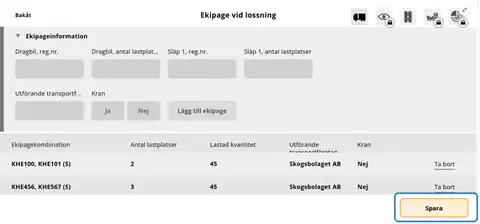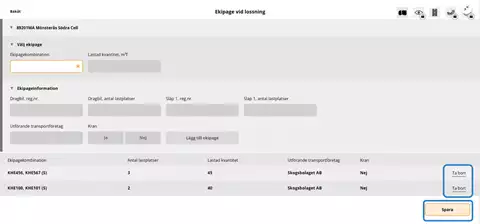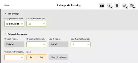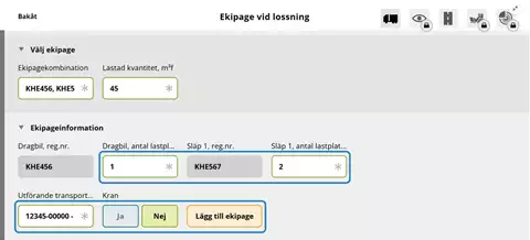 - Mätare registrerar vilka ekipage som ingår i lossningstillfället.