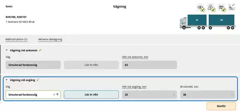 Vägning på fordonsvåg - med eller utan transportuppgifter