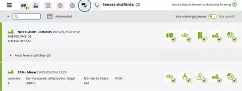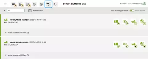 När du slutfört ett lossningstillfälle försvinner det från fliken Leveranstillfällen och återfinns istället under fliken för senast slutförda leveranstillfällen.